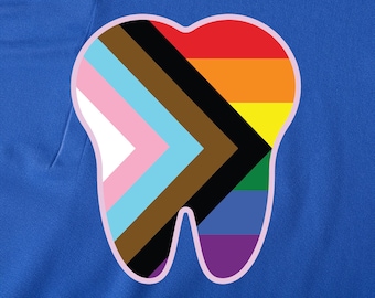 Tooth Shaped Progress Pride Flag LGBTQ Flag Dentist Office Staff Safe Space - Iron-On Vinyl for Fabric, T-shirts and more!