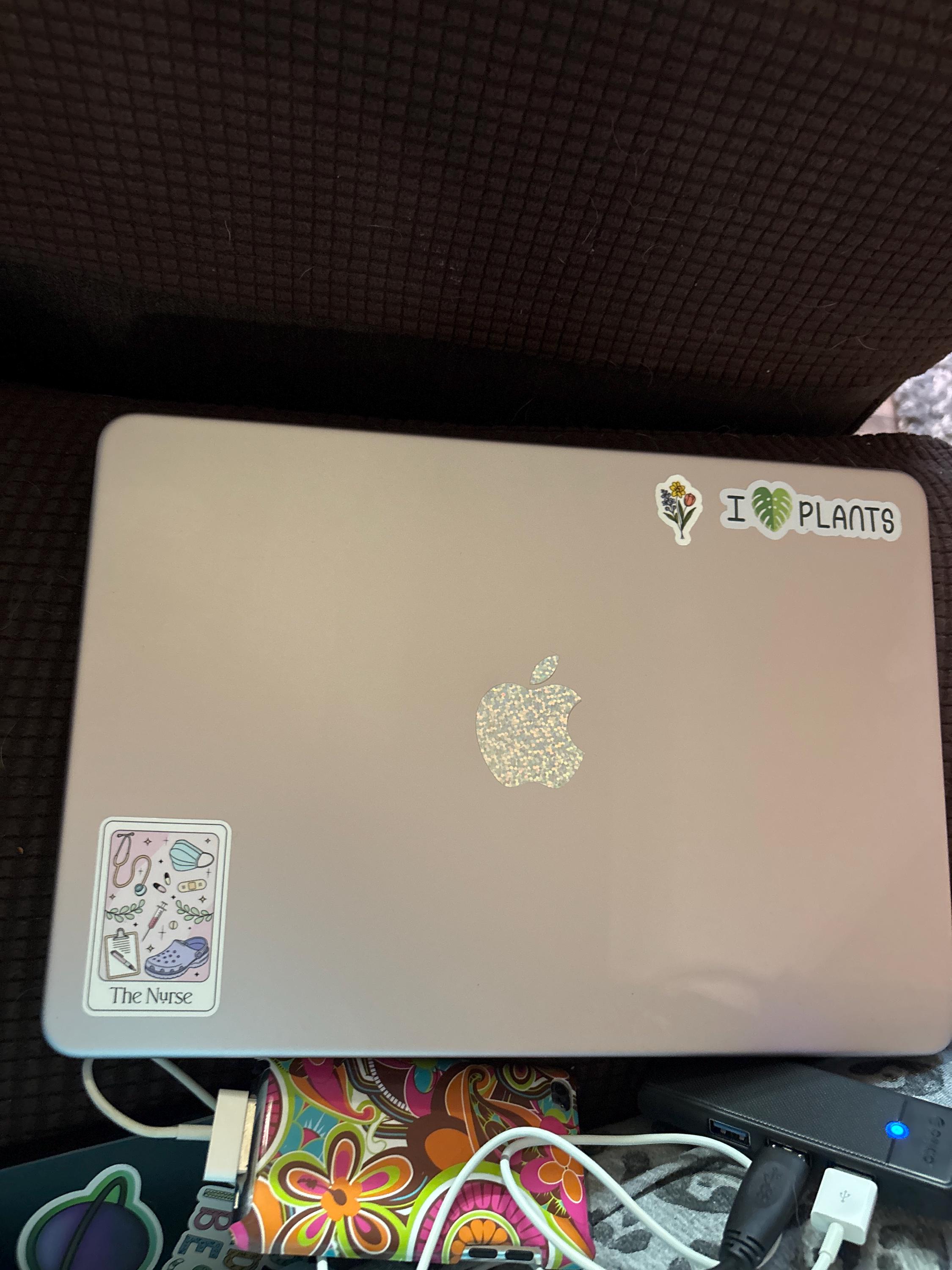 A cute little touch on my work laptop! I messed up the first application because I didn’t read the instructions lol. It came with two different sizes so it’ll fit any MacBook from the last 10 years.