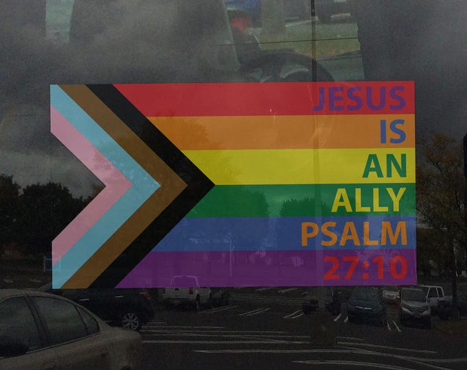 Jesus Is An Ally Psalm 27 10 Progress Pride Flag LGBTQ POC Transgender Flag - Semi-Transparent Window Cling (for Inside Windows)